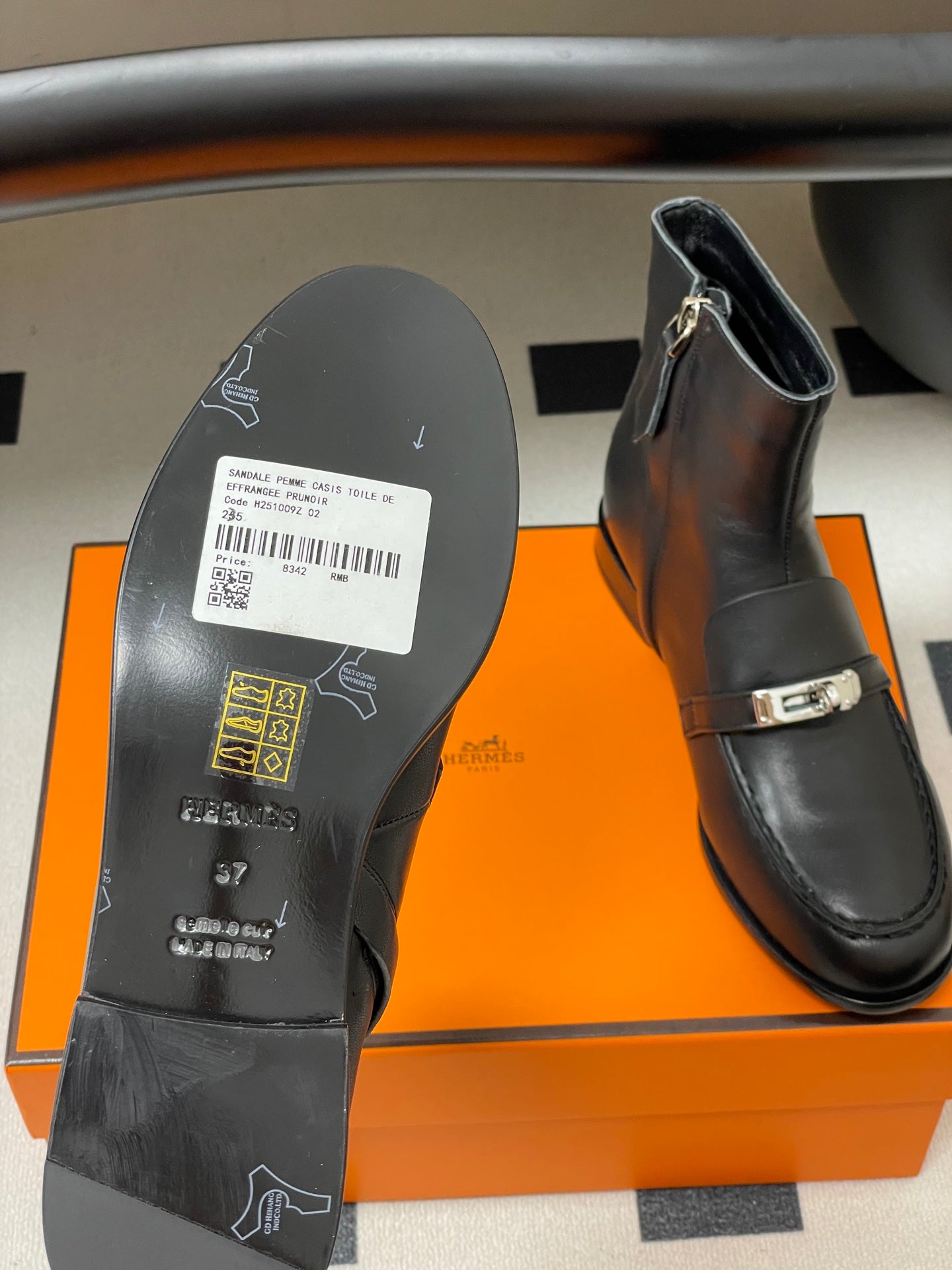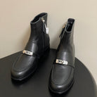 HM short boots kelly buckle black sheepskin