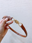 Hook & Loop 20mm TRIOMPHE Logo Square Adjustable Belt Tan Calfskin Ghw