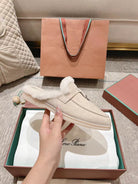 LP Charms Walk Babouche Loafer Bisque Cream mix White Suede With Rabbit Fur Lining 206243