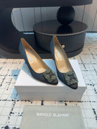 Manolo Blahnik Hangisi Embellished Pumps Black Satin Leather