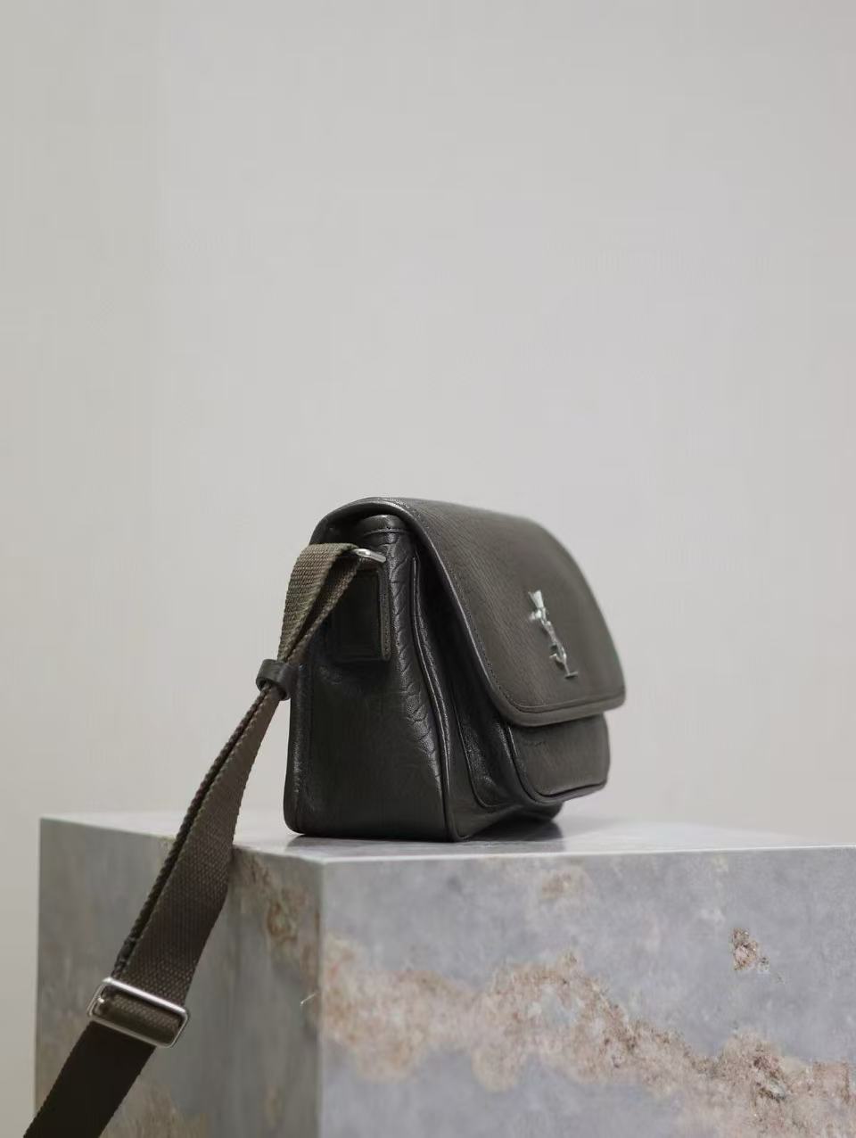 Saint Laurent Niki Logo Plaque Messenger Bag Dark Green Calfskin