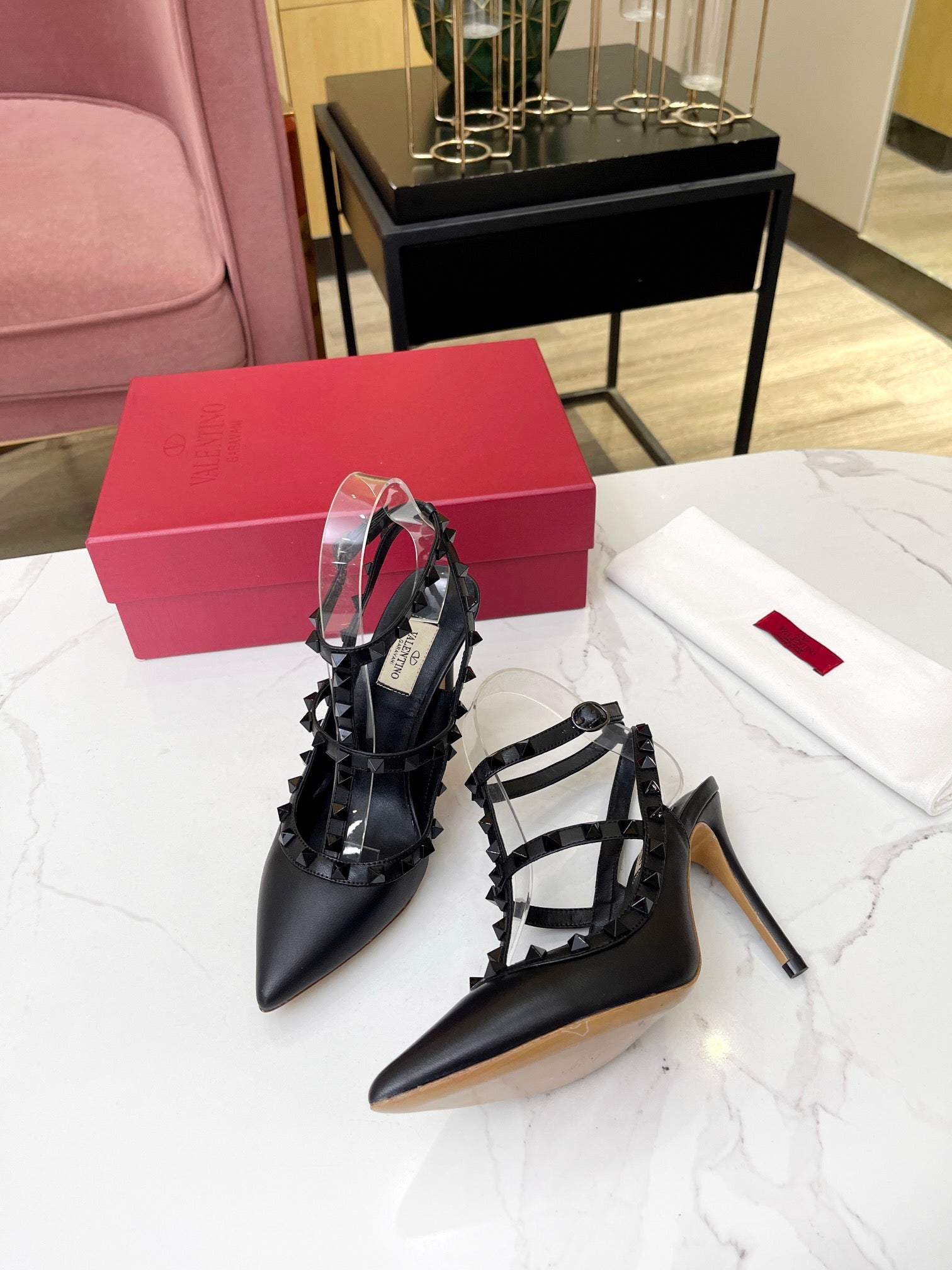 Valentino Rockstud Caged Pumps 95mm Black Beige Leather