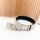 Vlogo Brown Black White Stone Silver Buckle Belt 40mm Black White Leather