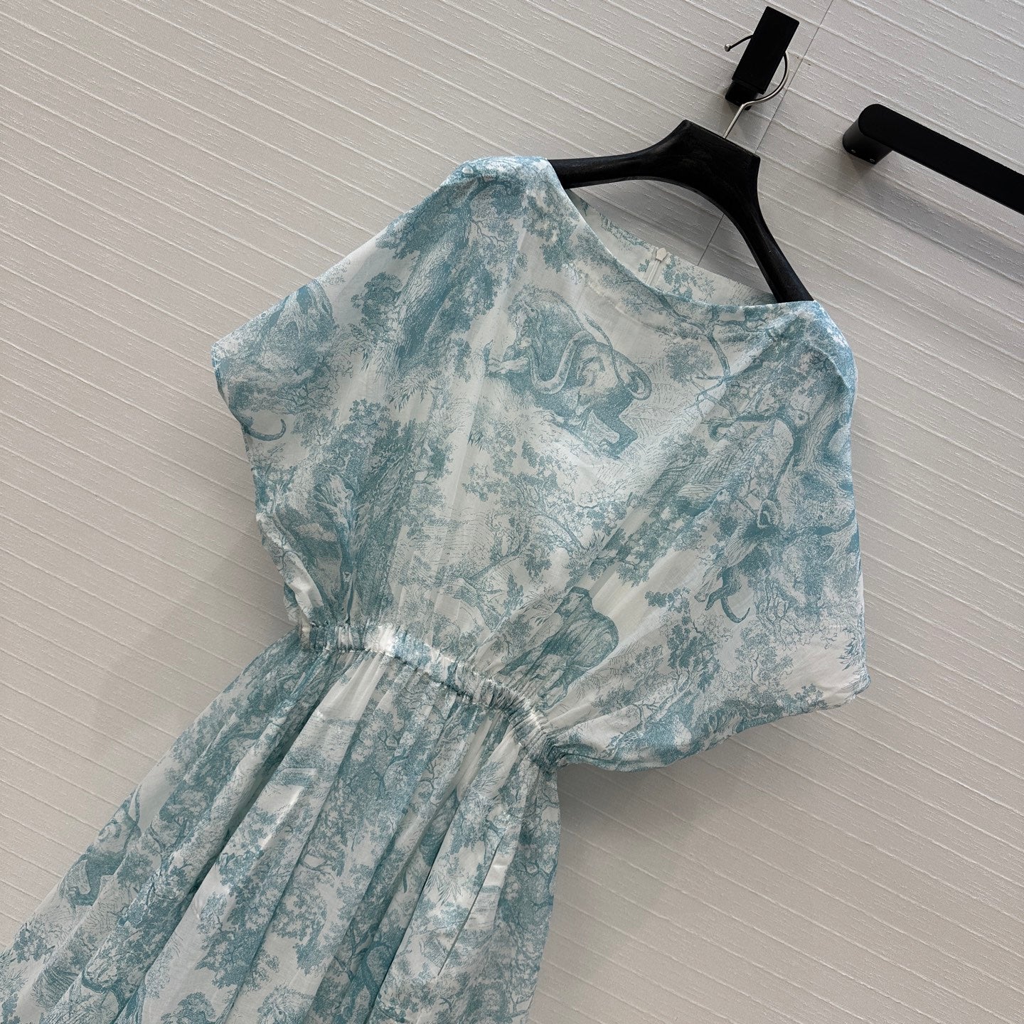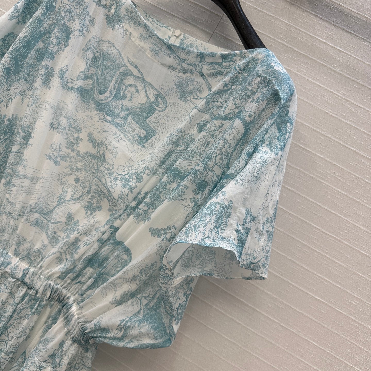 CD 25 Sauvage Jouy Print Button Dress Light Blue mix White Cotton
