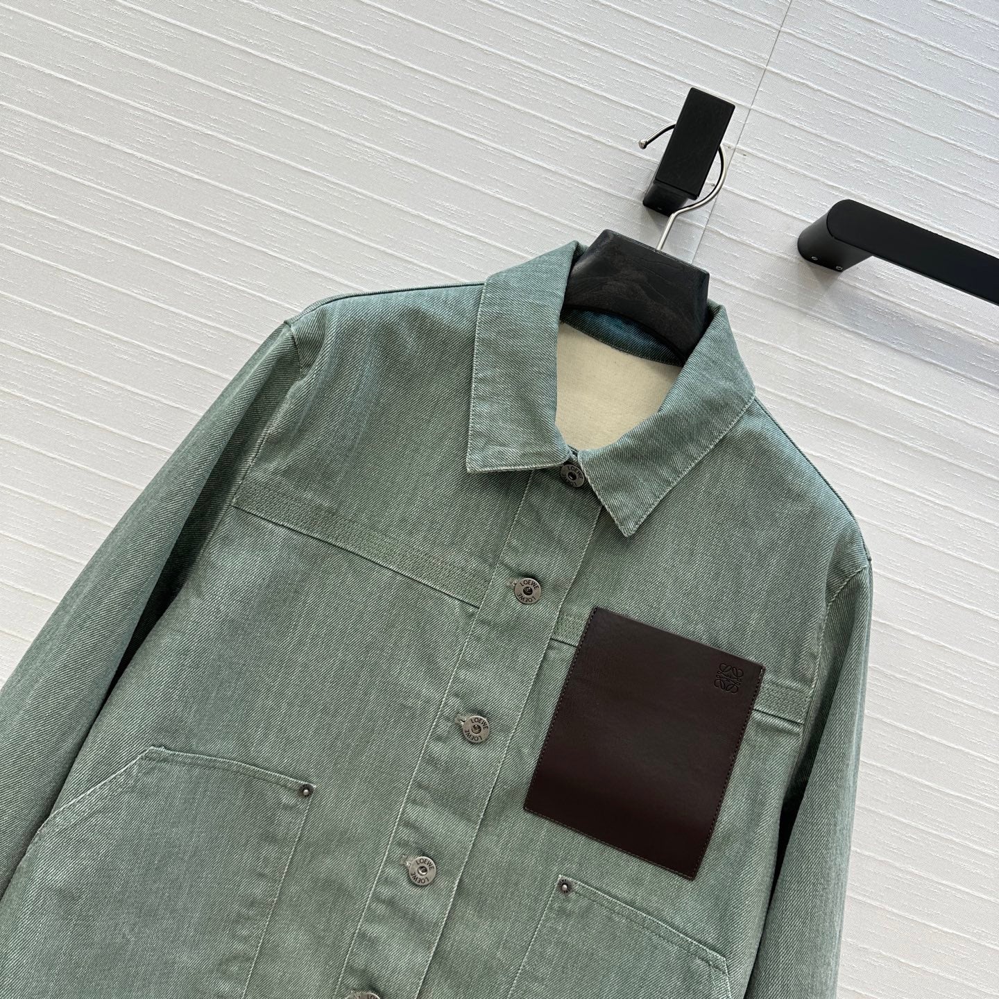 Loewe 25 Jacket Beige Green Cotton And Denim