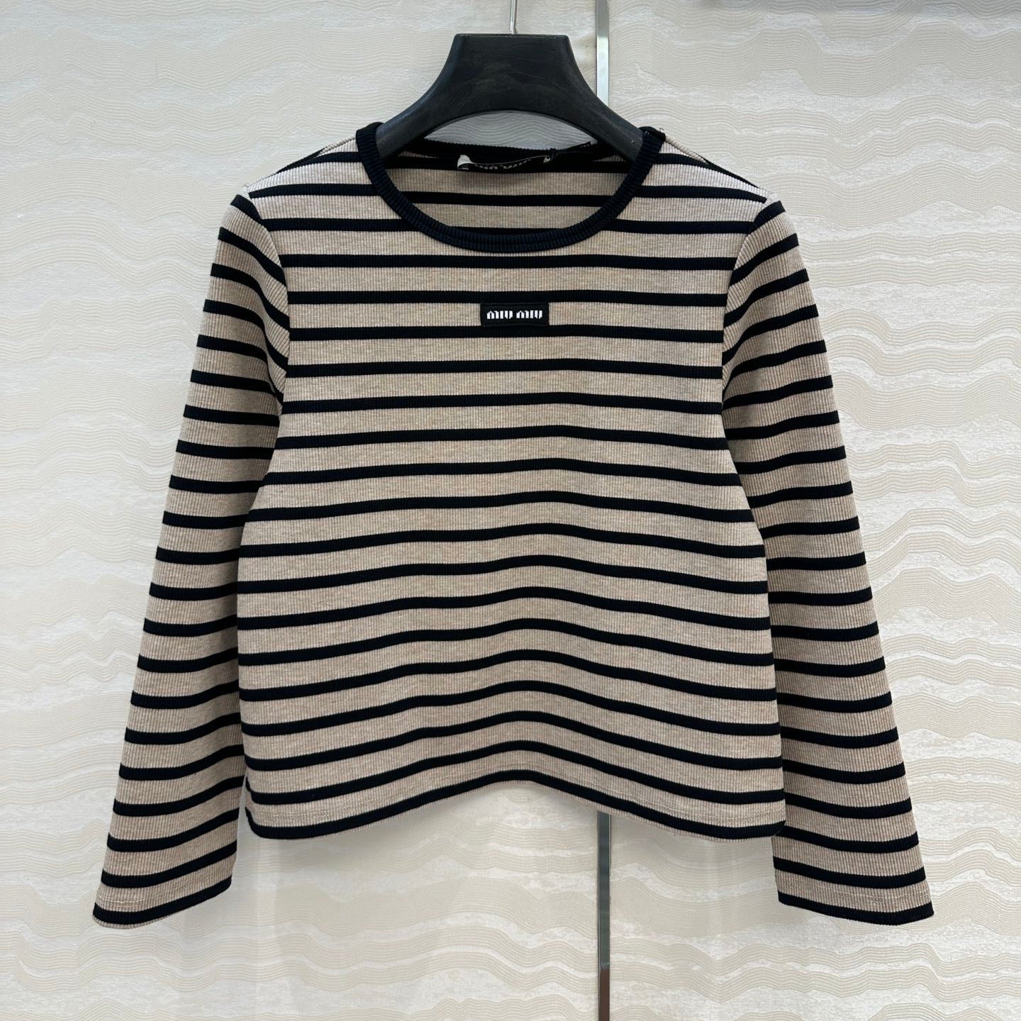 Celine 25 Striped Knitted Long-sleeved T-shirt White Black Cotton