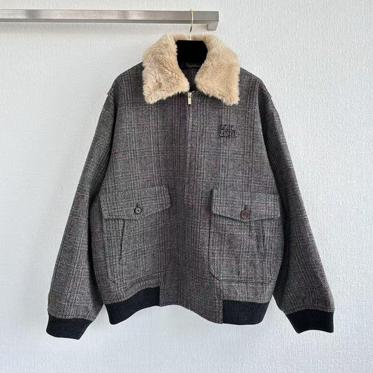 Miu Miu 25 Jacket Gray Beige Wool Viscose