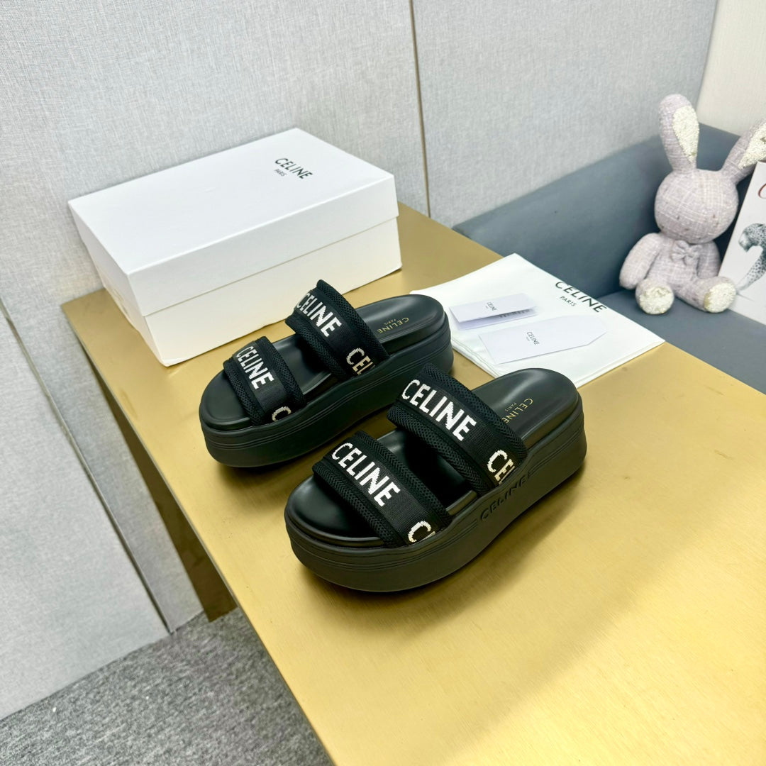Celine Flatform Dad Sandal Mule Black Fabric with Rubber 238142
