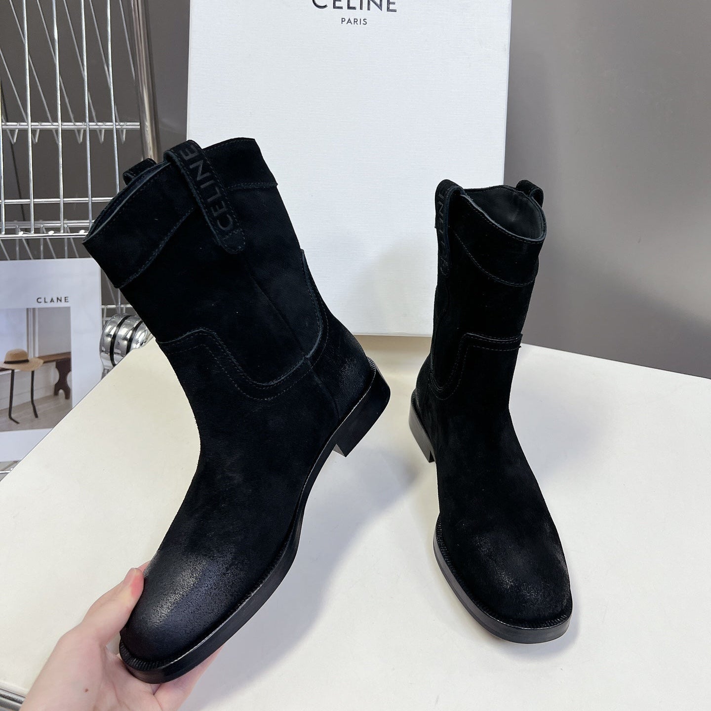 CELINE 25 cowboy boots black suede 434414