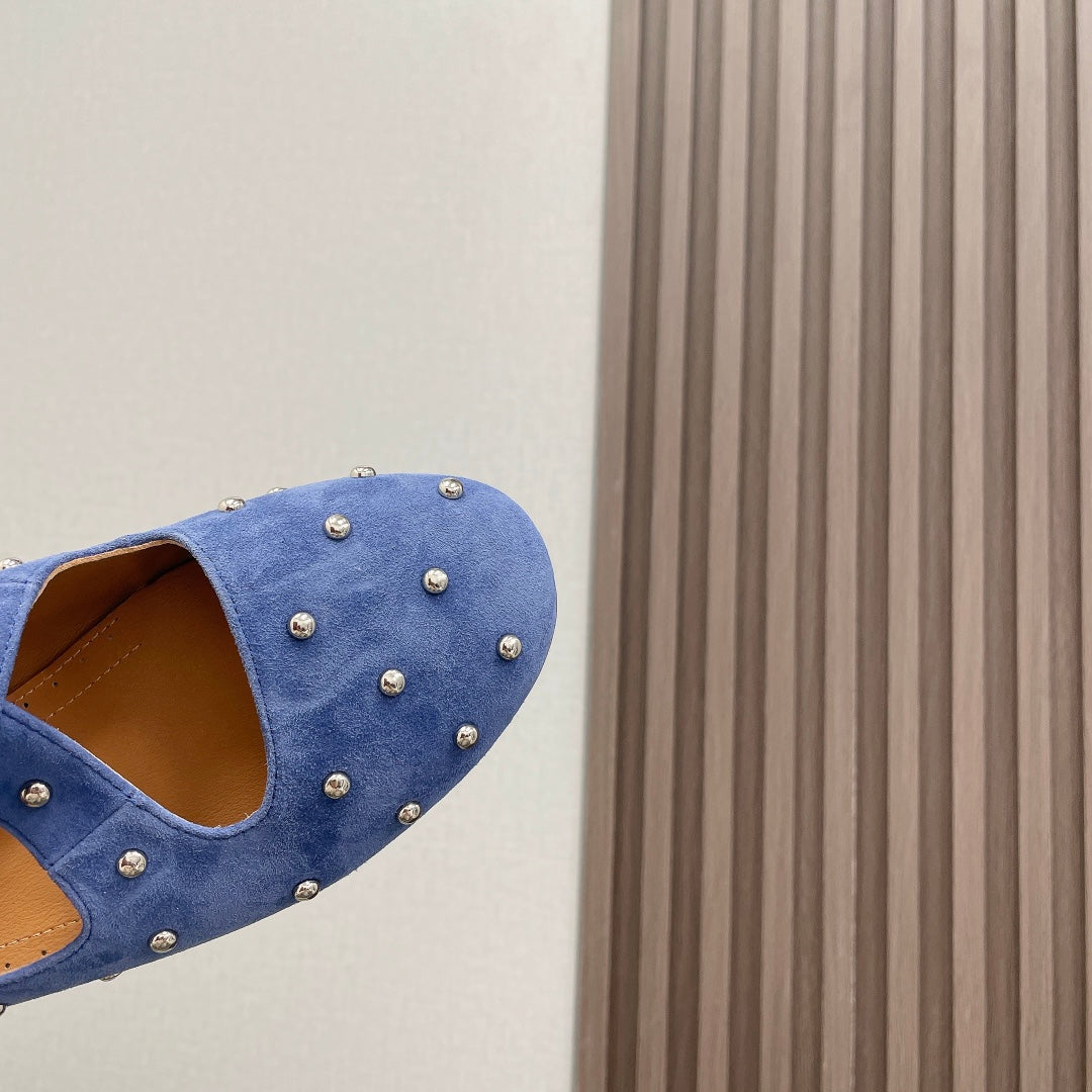 Alaia 2025 Criss Cross With Stud Ballet Flats Light Blue Suede 293212
