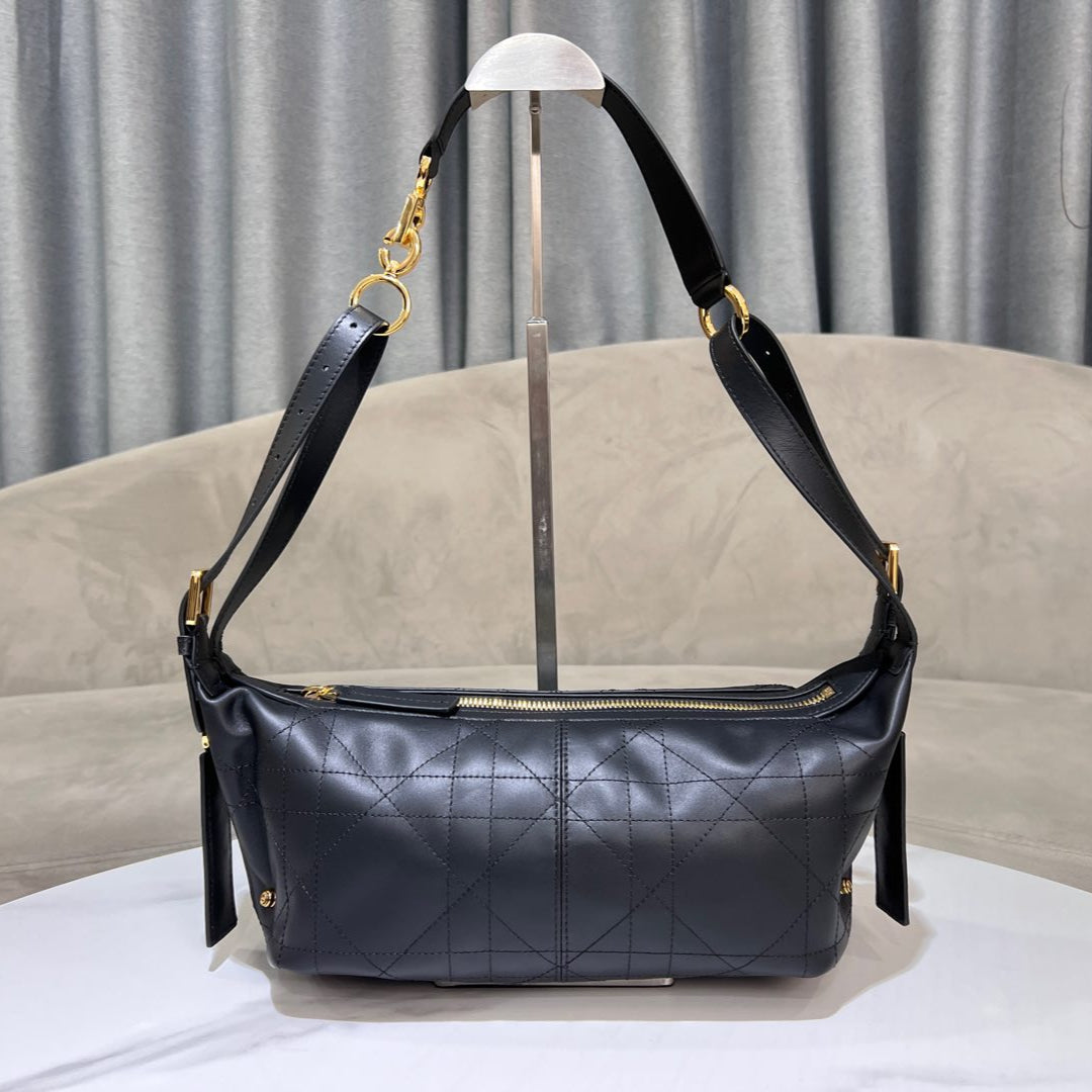 CD Hobo Bag 23 With Chain Black Wrinkled Calfskin