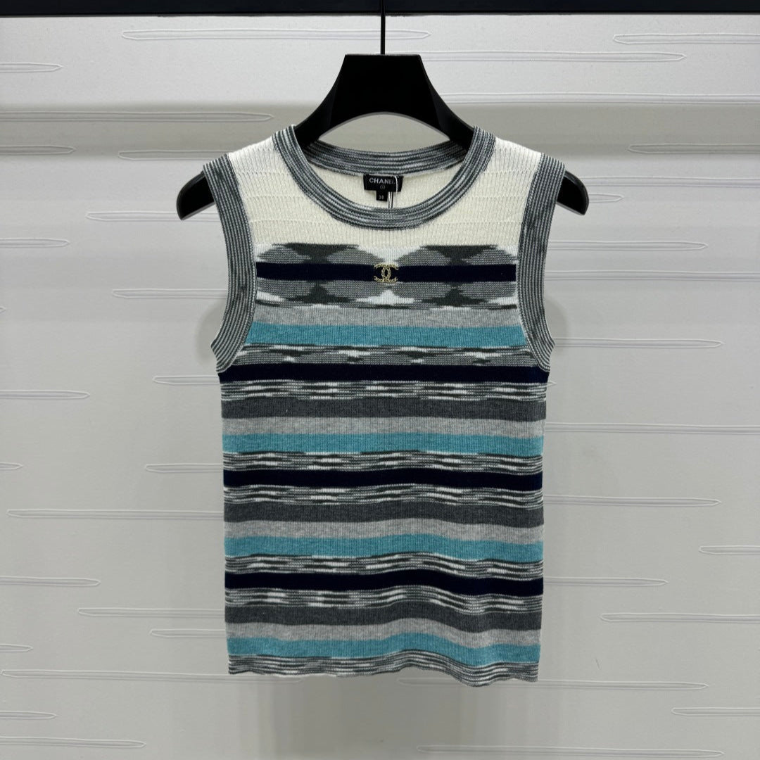 Chanel 25 Multicolor Striped Knitted Tank Top