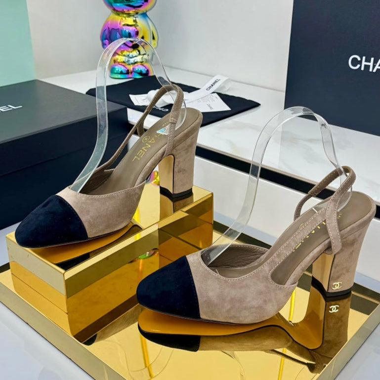 Chanel Slingback 90mm Light Beige Black Suede 469669