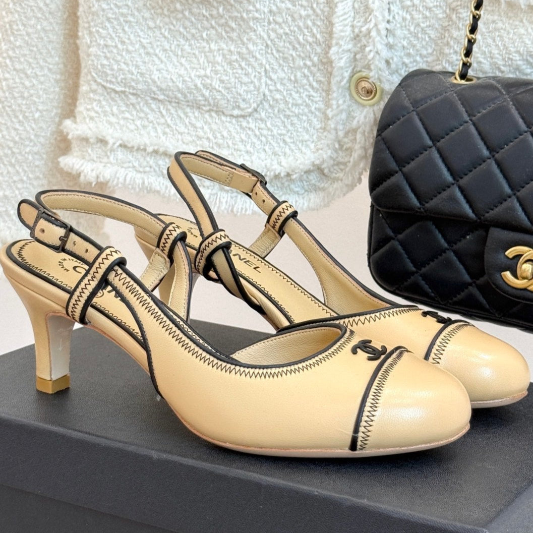 Chanel 25 Slingback 30mm Beige Black Lambskin 473213