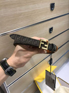 FF Belt 2mm Monogram Canvas Beige Calfskin Gold Hardware