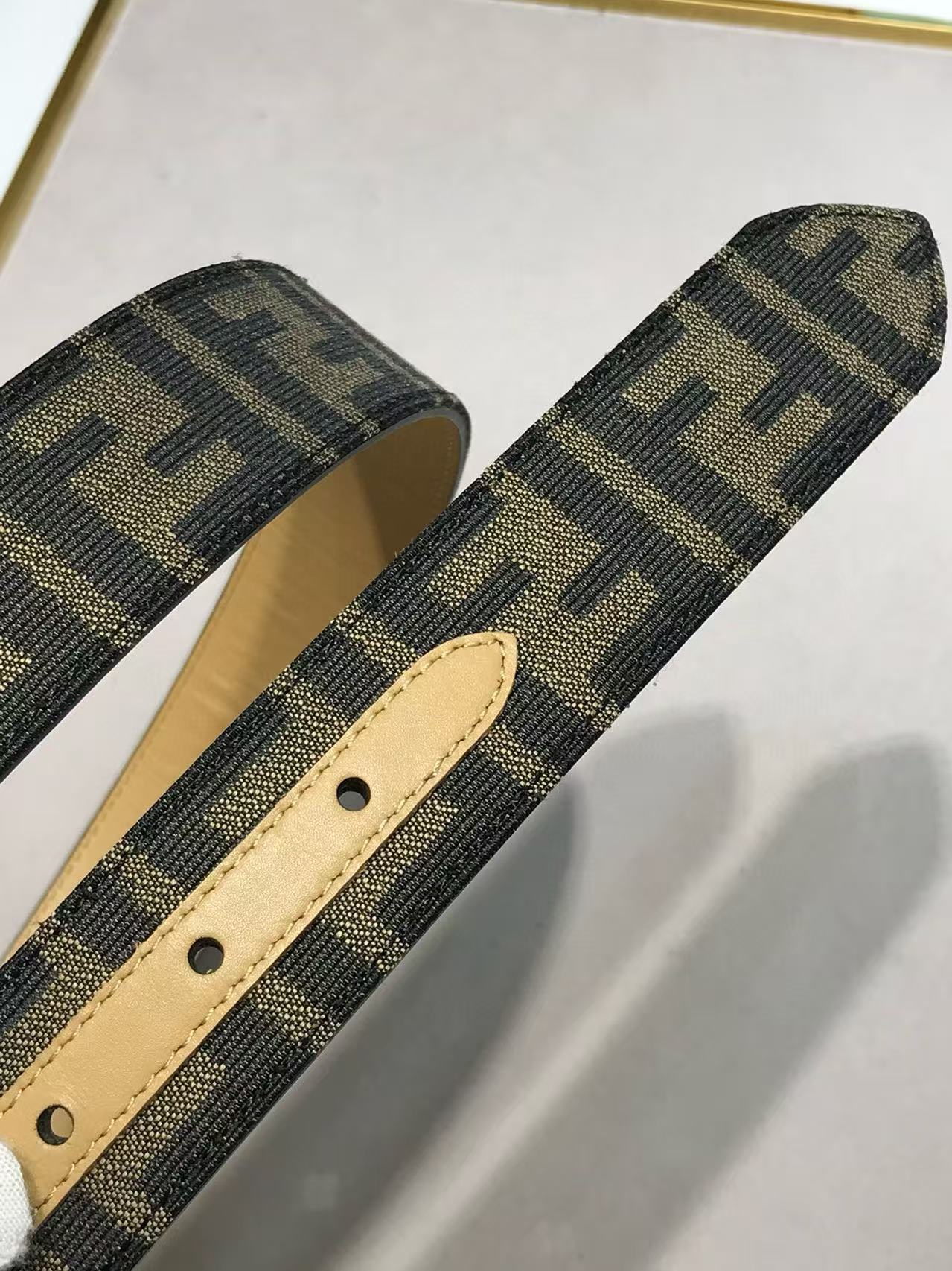 FF Belt 35mm Monogram Canvas Beige Calfskin Gold Hardware