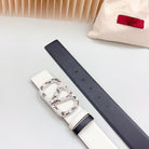 Vlogo Brown Black White Stone Silver Buckle Belt 40mm Black White Leather