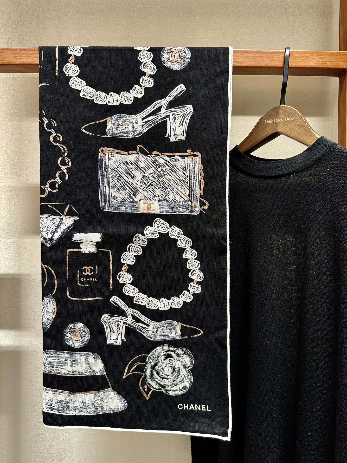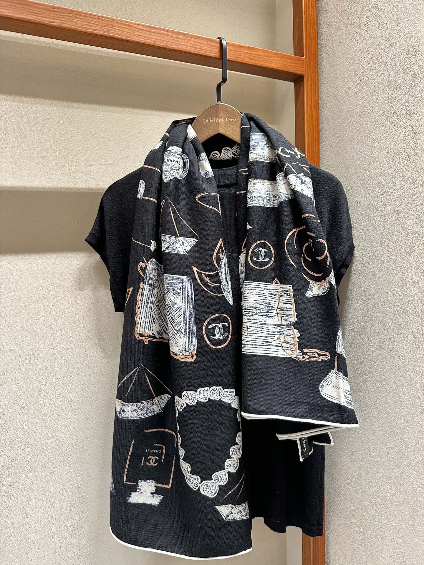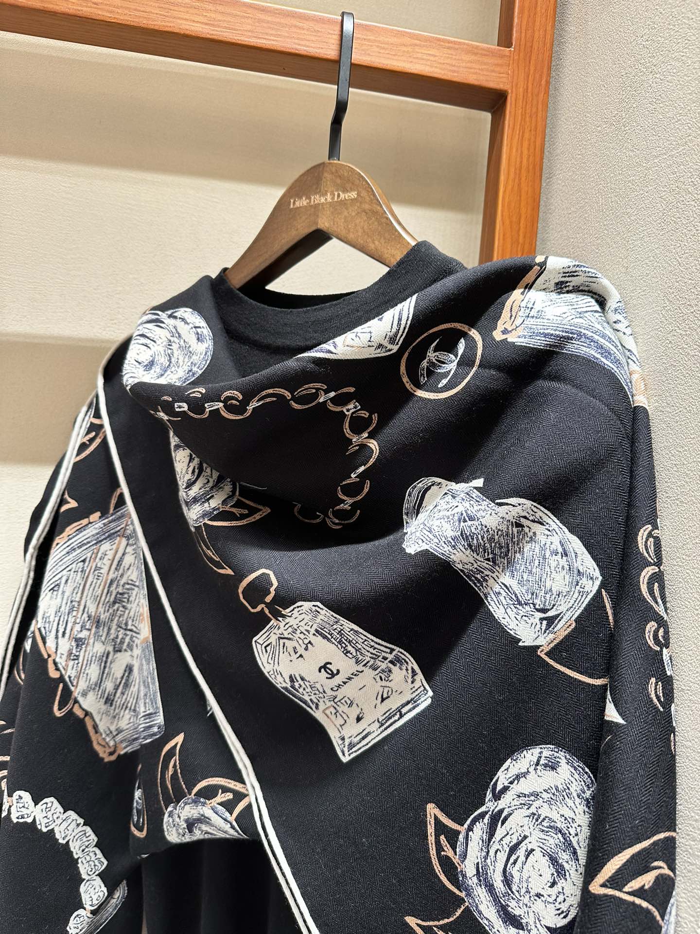 CC Square Scarf 140 CM In Black White Cashmere Silk 408655