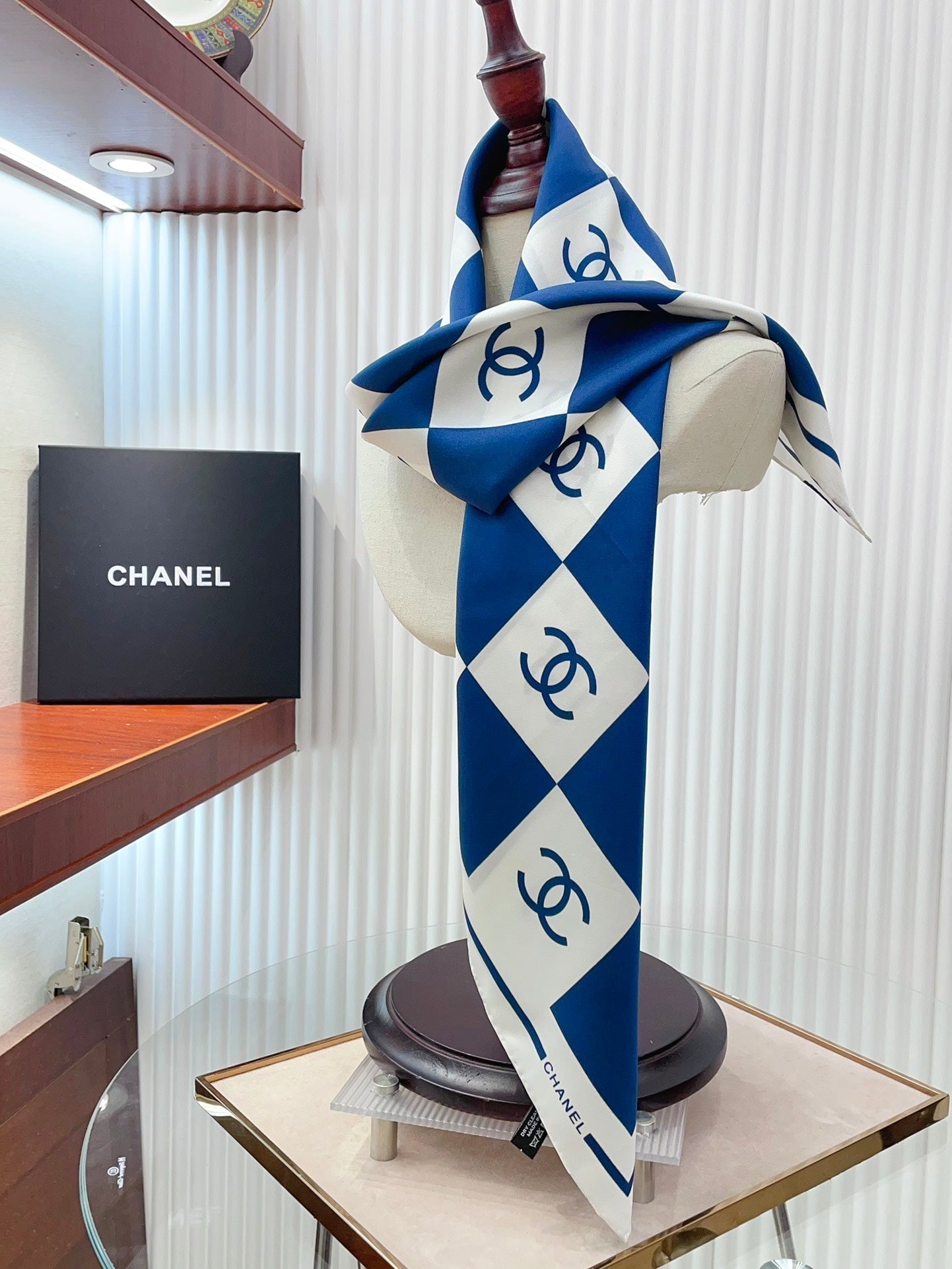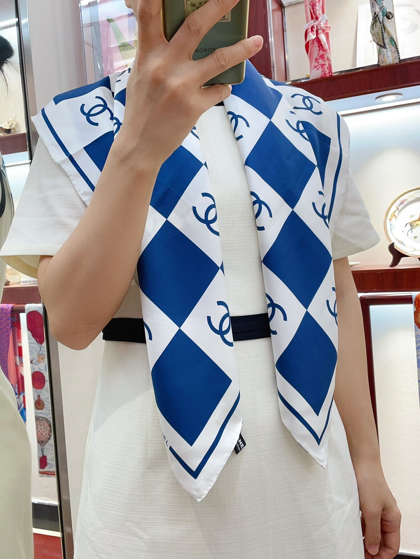 CC Square Scarf 90 CM In Blue And White Striped Silk 174876
