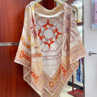Effet Kaleidoscope Shawl 135 CM In Beige Colorful Cashmere And Silk 382610