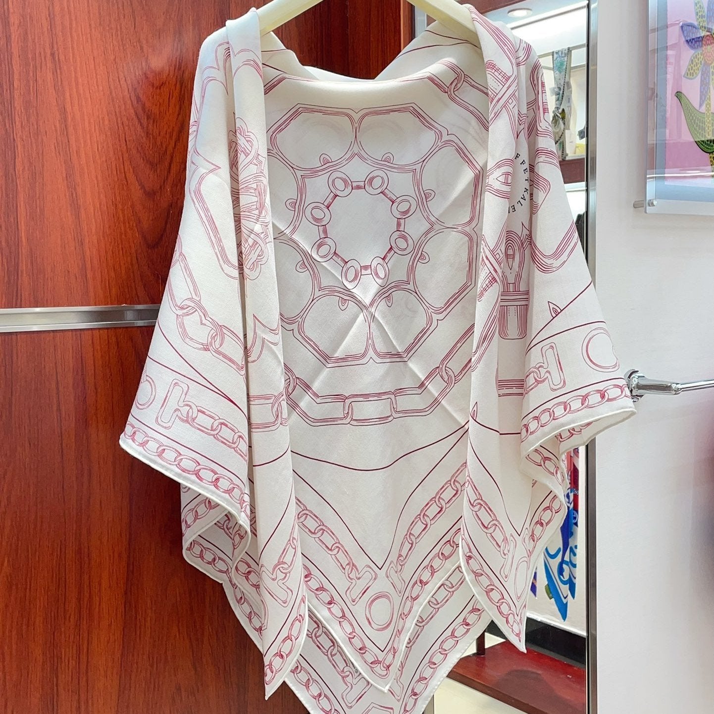 Effet Kaleidoscope Shawl 135 CM In White Mix Red Cashmere And Silk 382606
