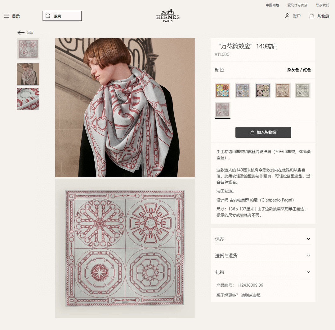 - Material: 70% Cashmere, 30% Silk