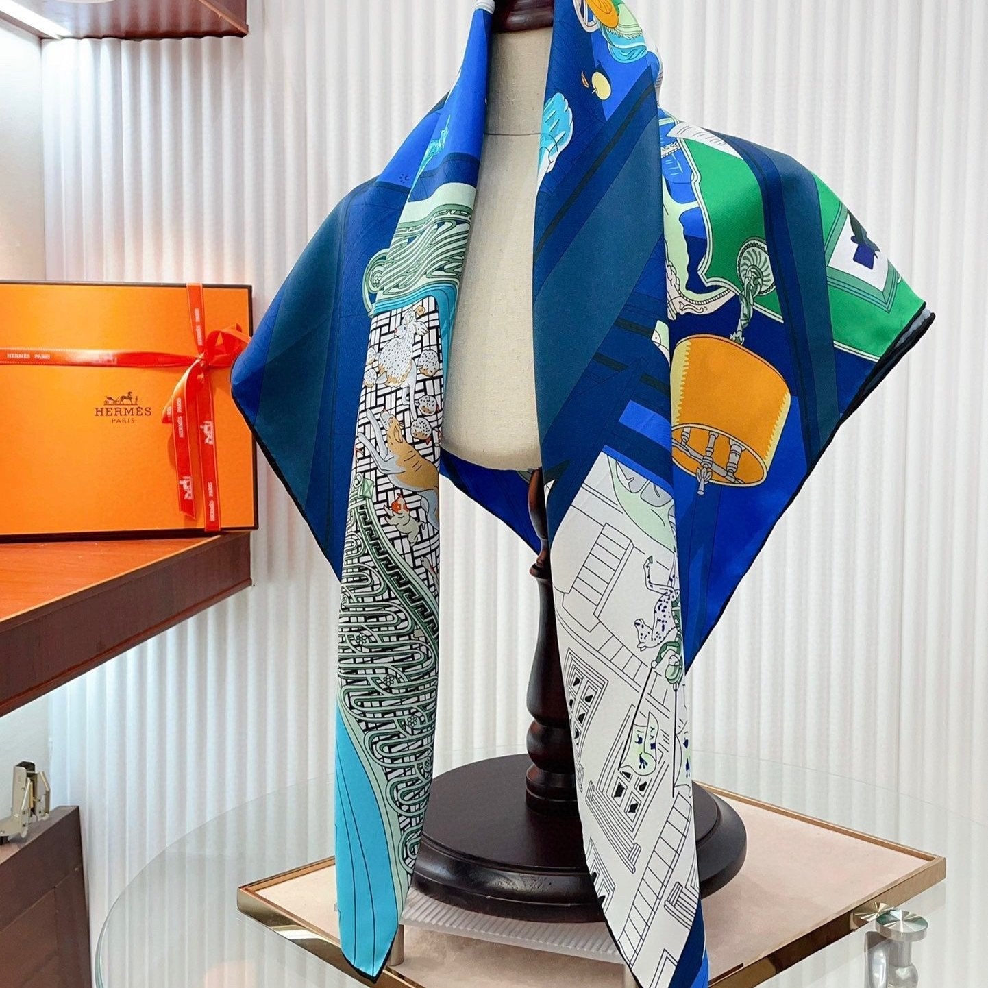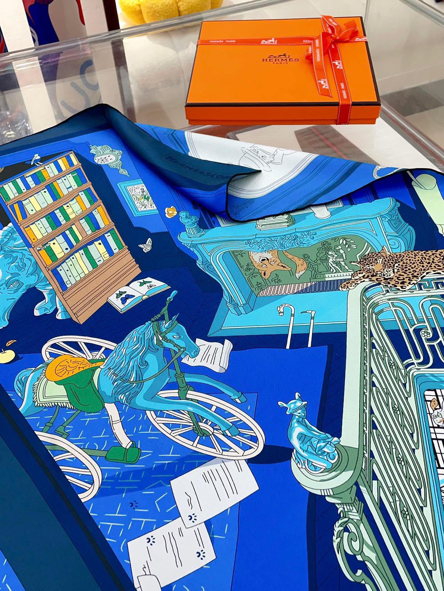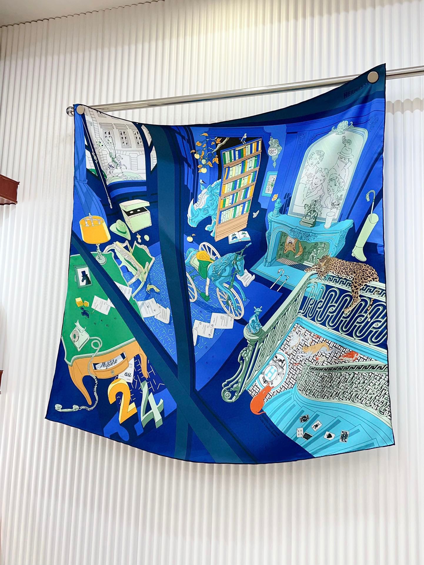 Mystere Au 24 Scarf 90 CM In Dark Blue Colorful Silk Twill 321935