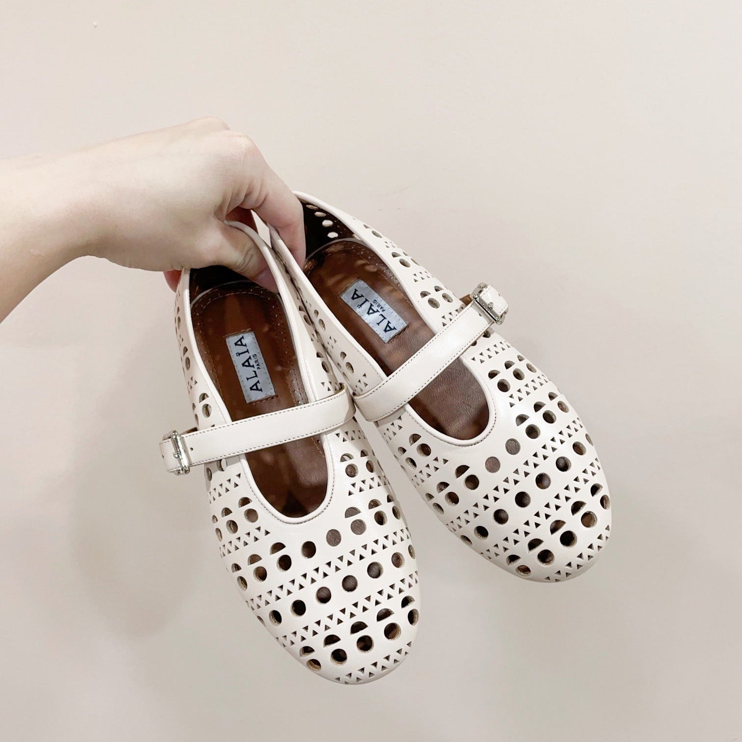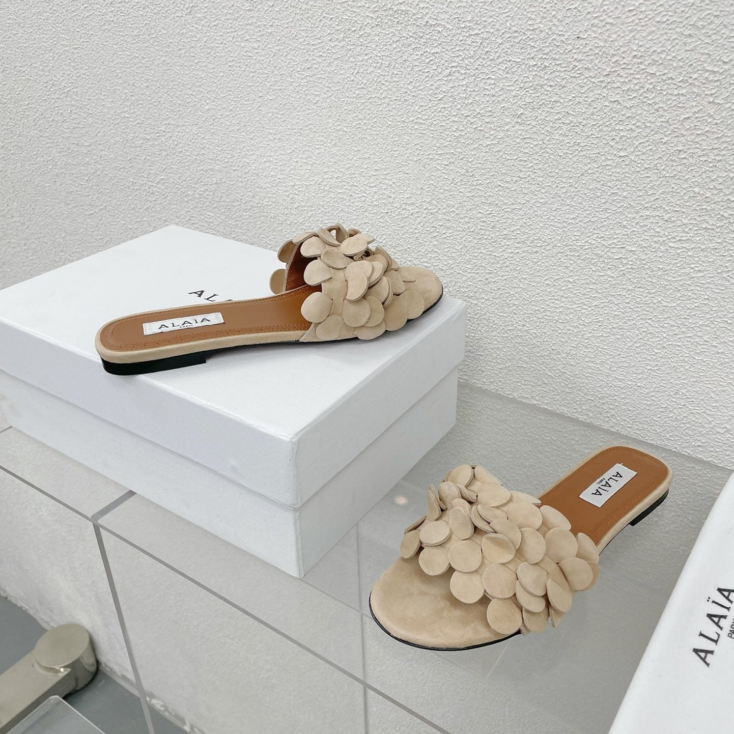 Alaia 25 Flower Slippers Pale Yellow Sheepskin 293158