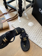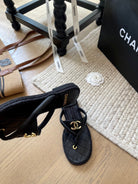 CC 25 Flip Flop Sandals Black Calfskin Espadrilles