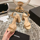 CC 25C 10CM Mid Heed Sandals Cream Italian Leather 213320