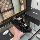 CC 25S Dad Sandal Mule Black Patent Calfskin