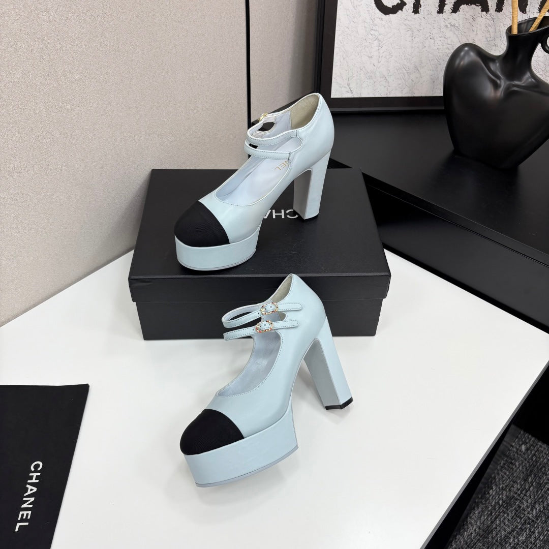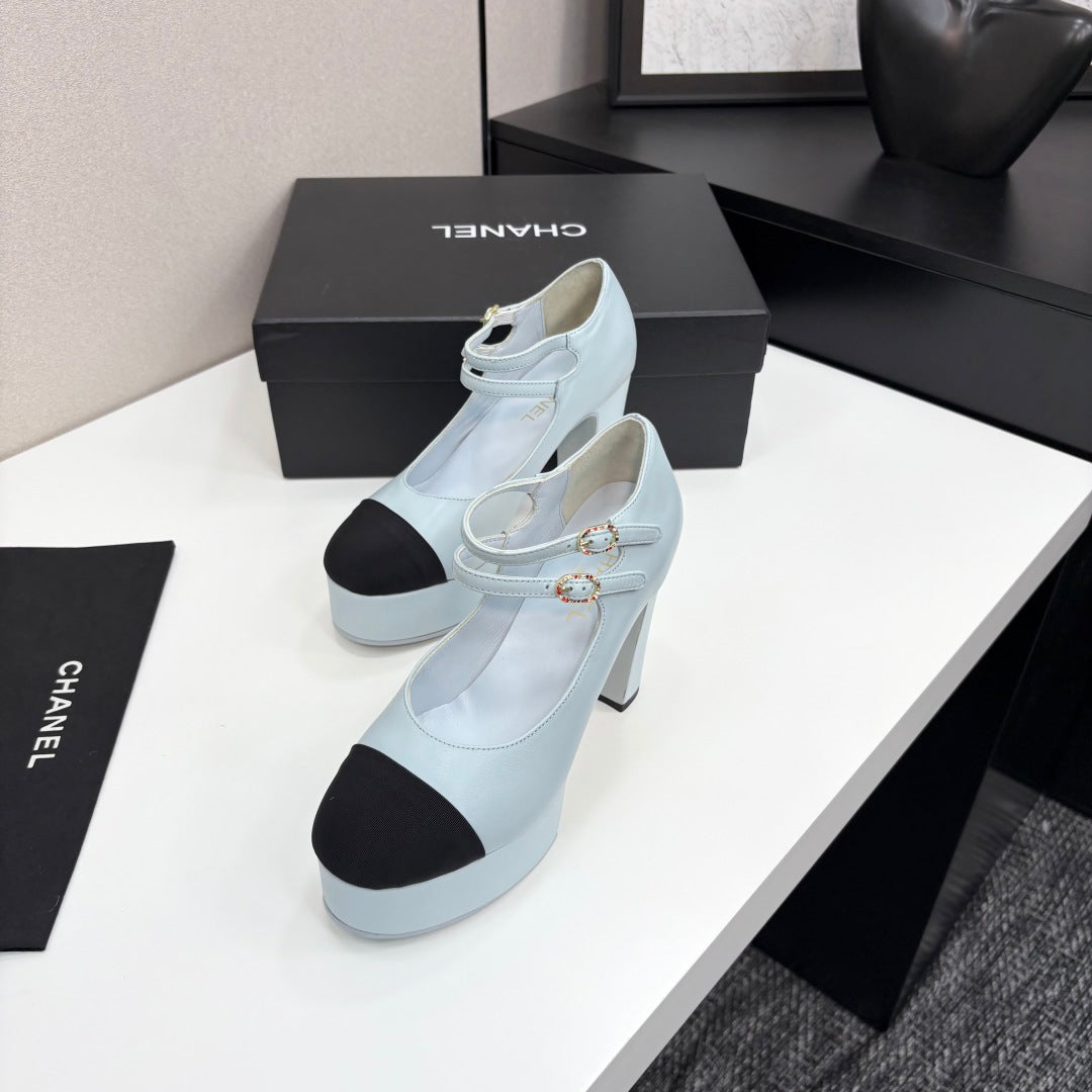 CC 25S Mary Jane Platform 11cm Cloud Blue Calfskin Grosgrain