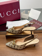 GG Horsebit Slingback 45MM Beige Ebony Monogram Canvas Point Toe Crystal-Embellished