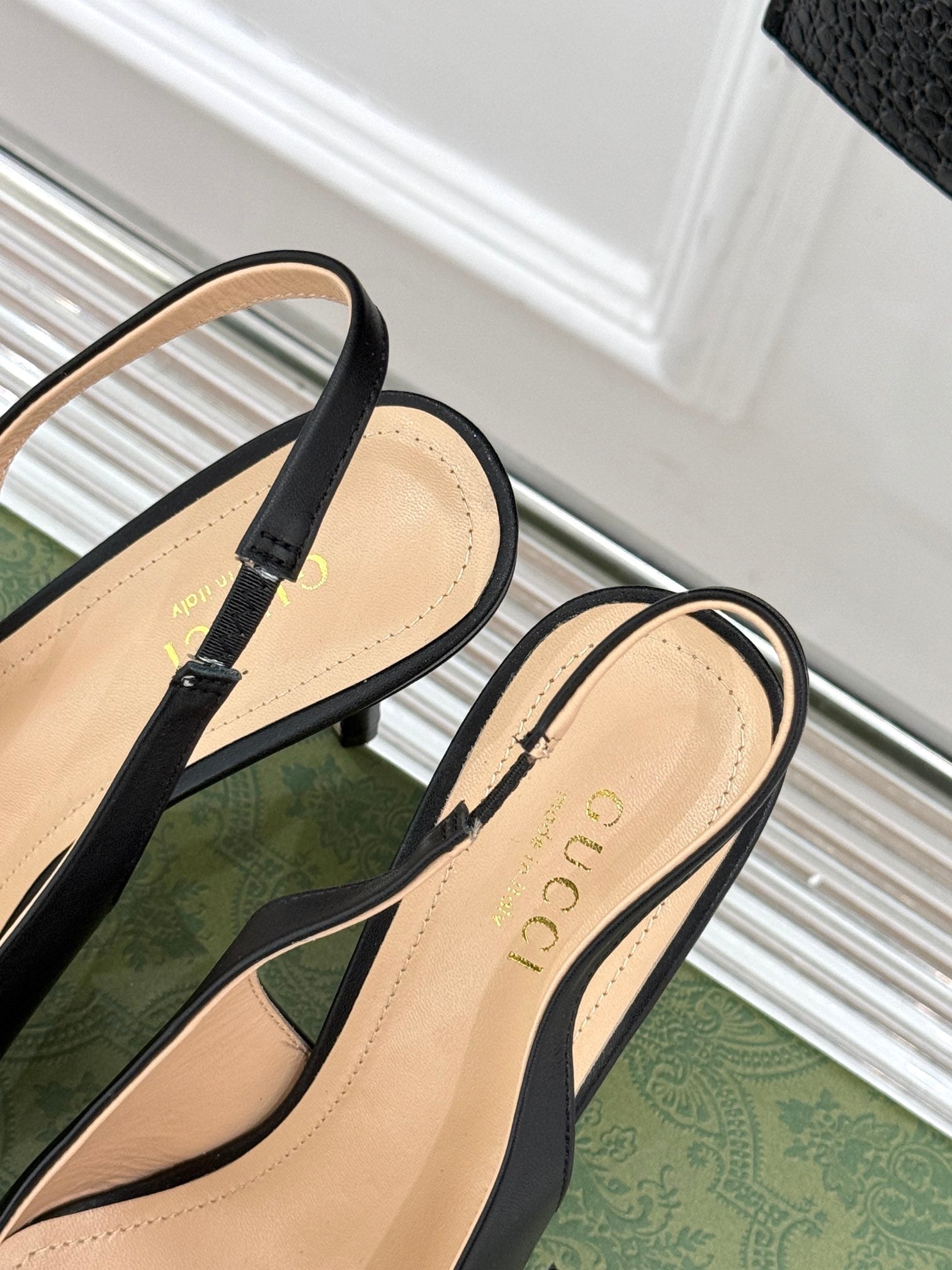 GG Horsebit Slingback 85MM Black Leather Point Toe