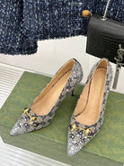 GG Pump 85 Beige Black Ebony Canvas Crystal-Embellished