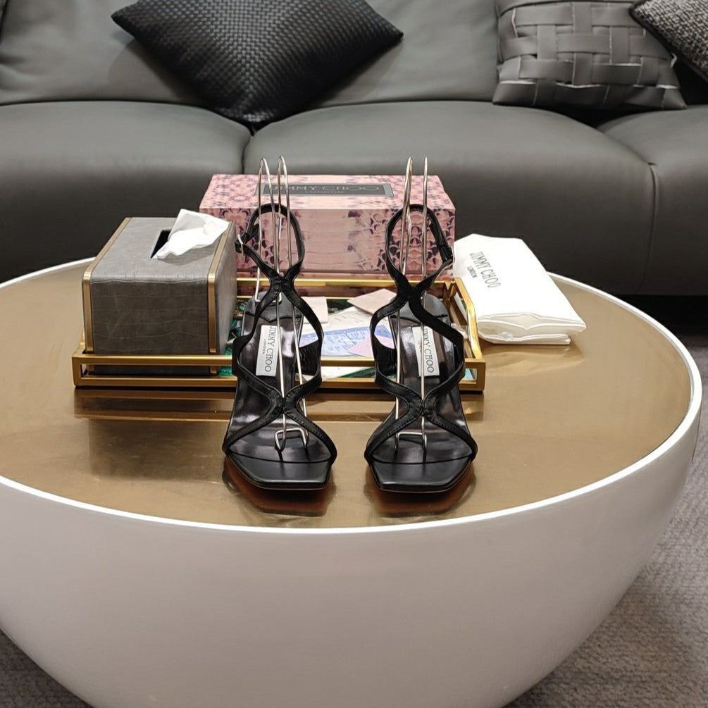 Jimmy 25 Azie Colorblock Sandal 11CM Black Calfskin 240109