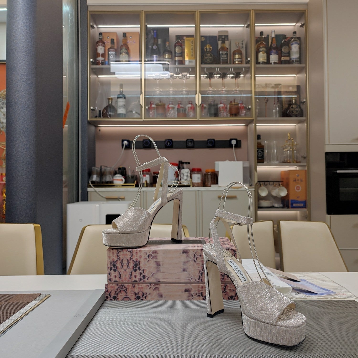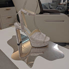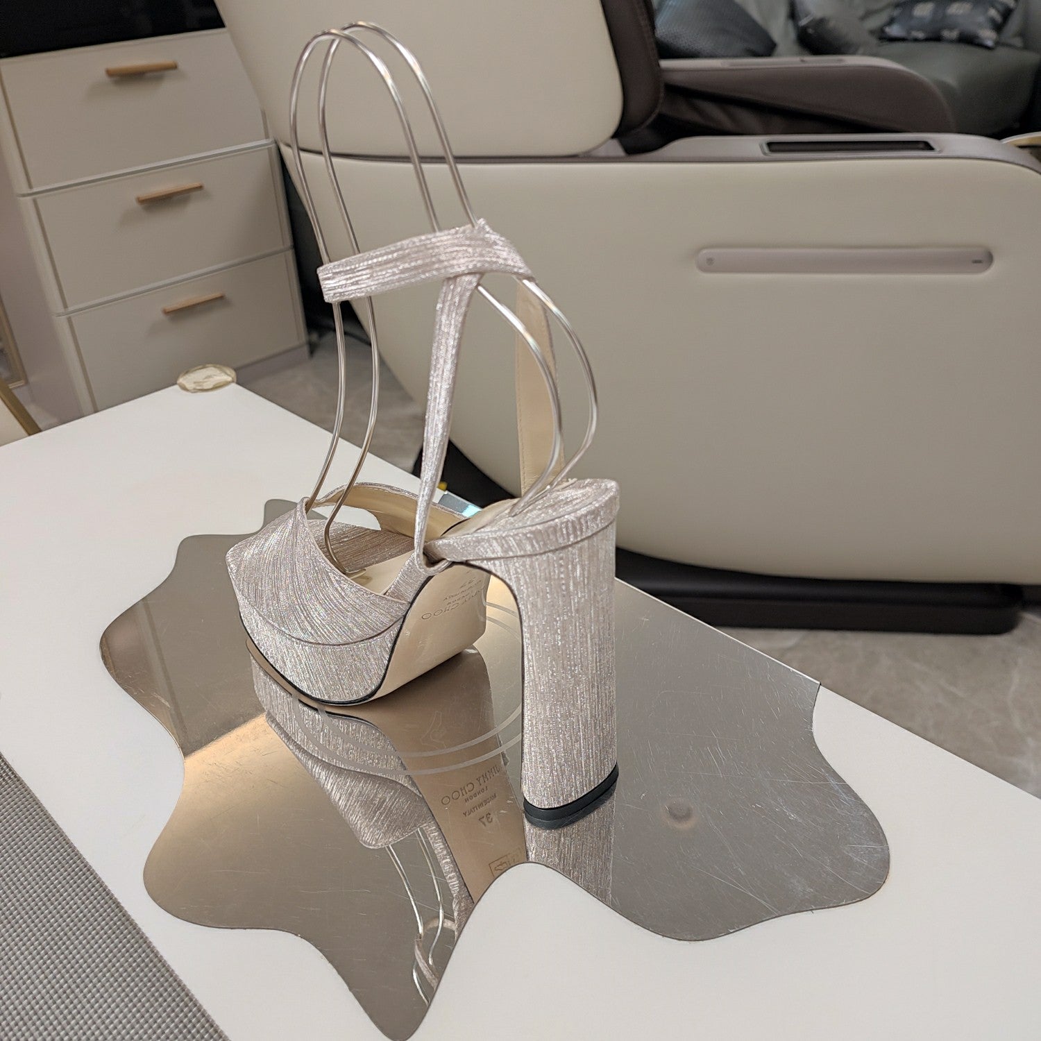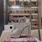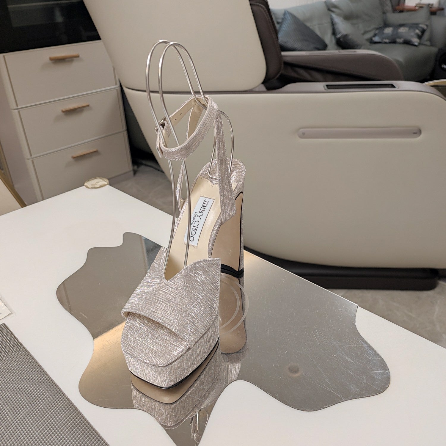 Jimmy 25 Platform Sandal Heels Beige Satin Fabric 240015