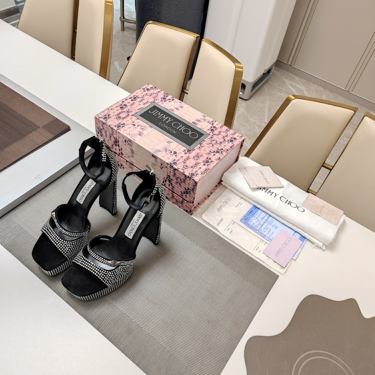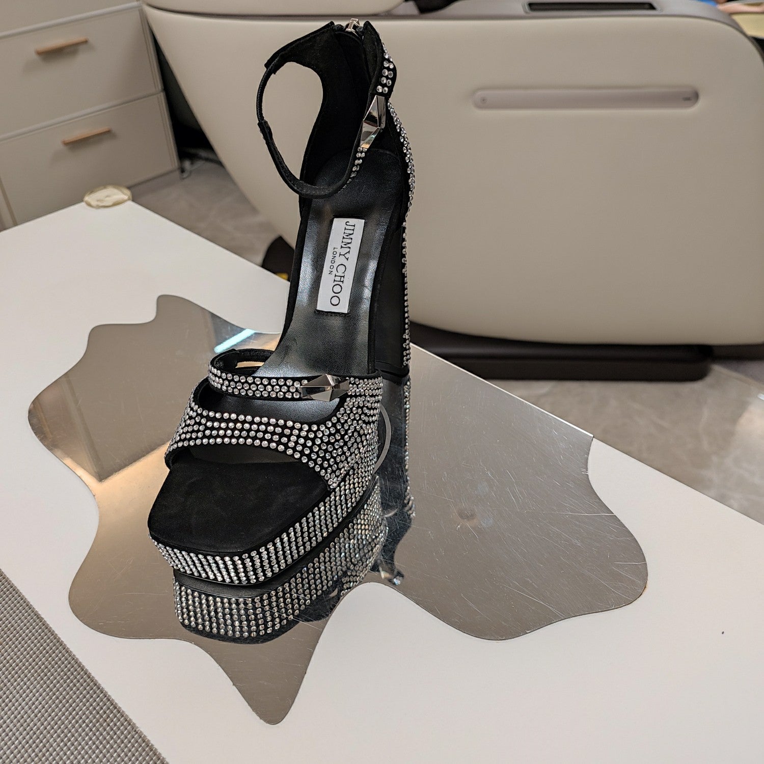 Jimmy 25 Platform Sandal Heels Black Silk Satin 240006