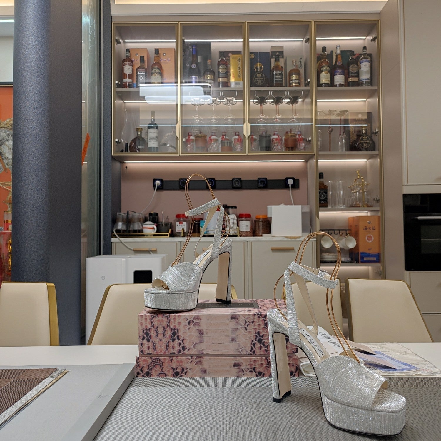 Jimmy 25 Platform Sandal Heels Silver Satin Fabric 240016