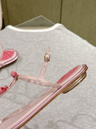 RC 25 Thong Bow Attached Flat Sole Pink Silk Rhinestones 268065