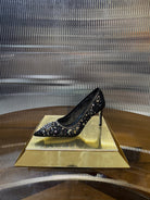 RC 25C Crystal Pearl Gem Lace High Heels Black Sheepskin 275754