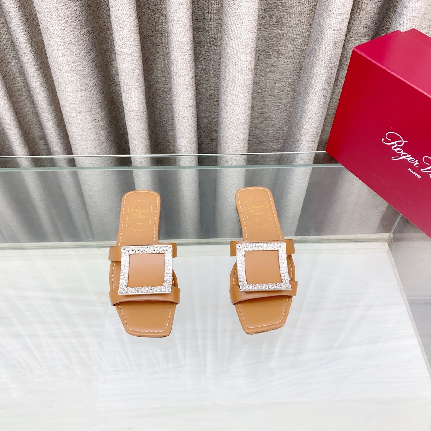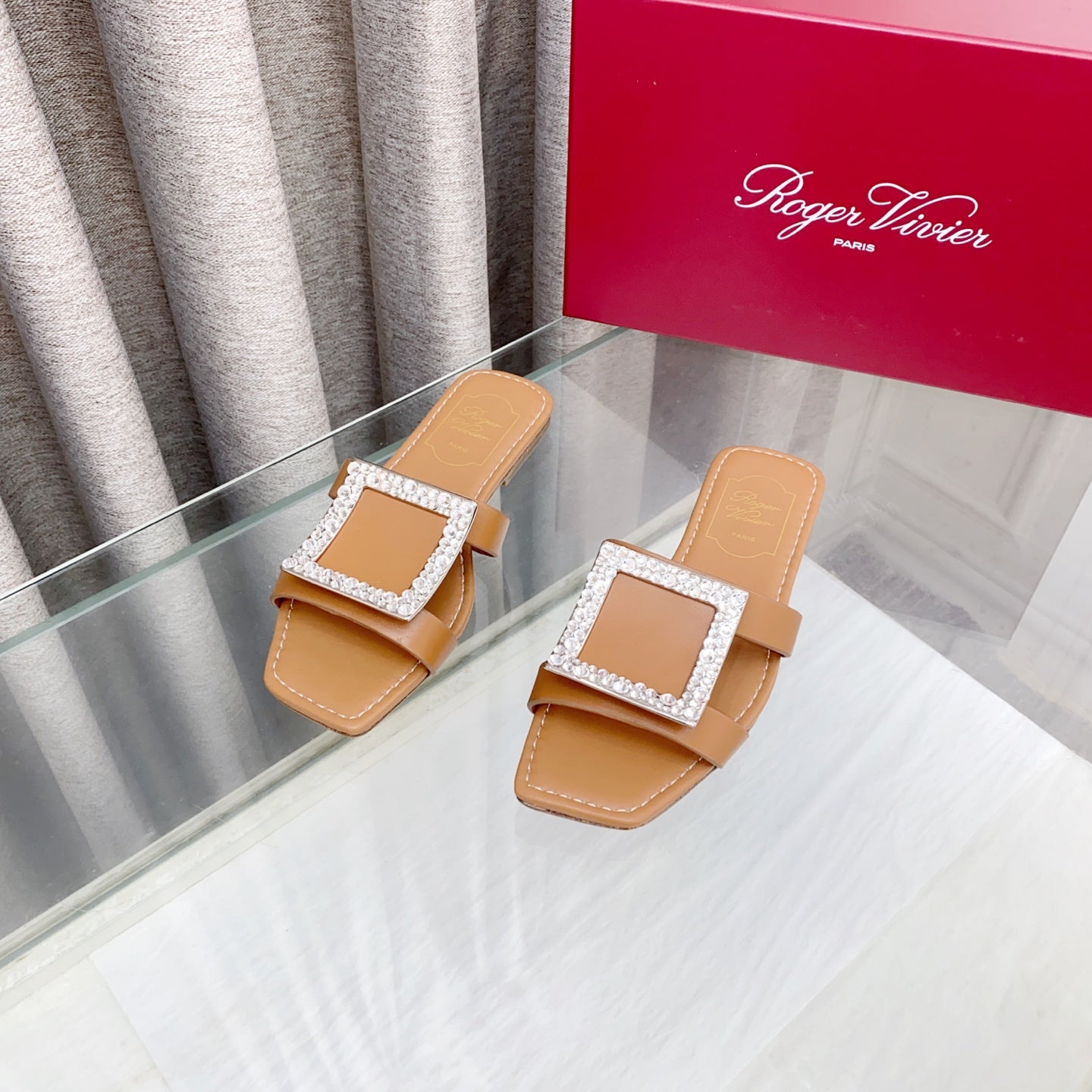 Viv 25 Diamond Flat Slippers Brown Cowhide 283035