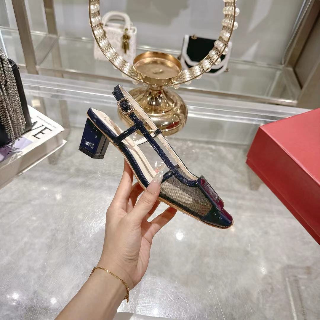 Viv 25 Slingback Navy Blue Mesh Italian Leather 300781