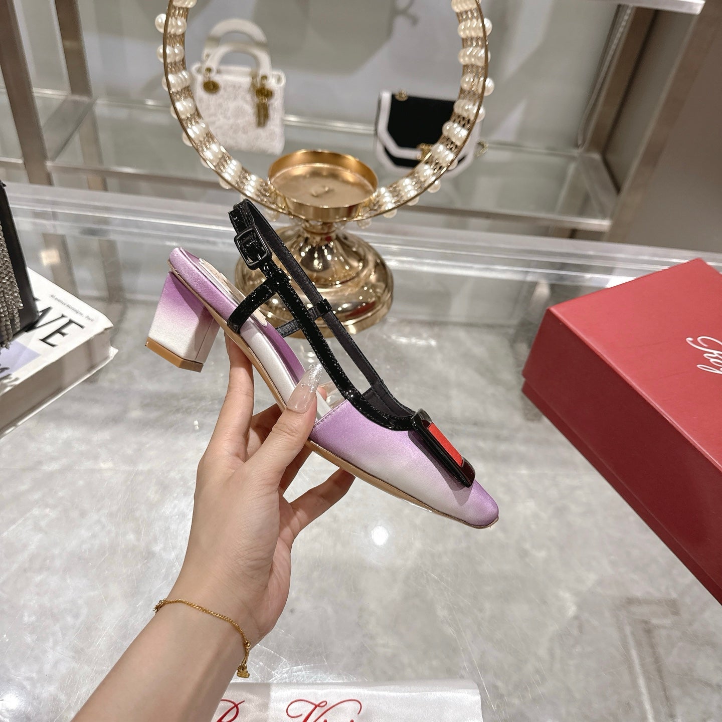 Viv 25 Slingback White Purple Italian Leather 300784