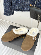 Alaia 25WF slippers belt buckle khaki brown suede wool 472227