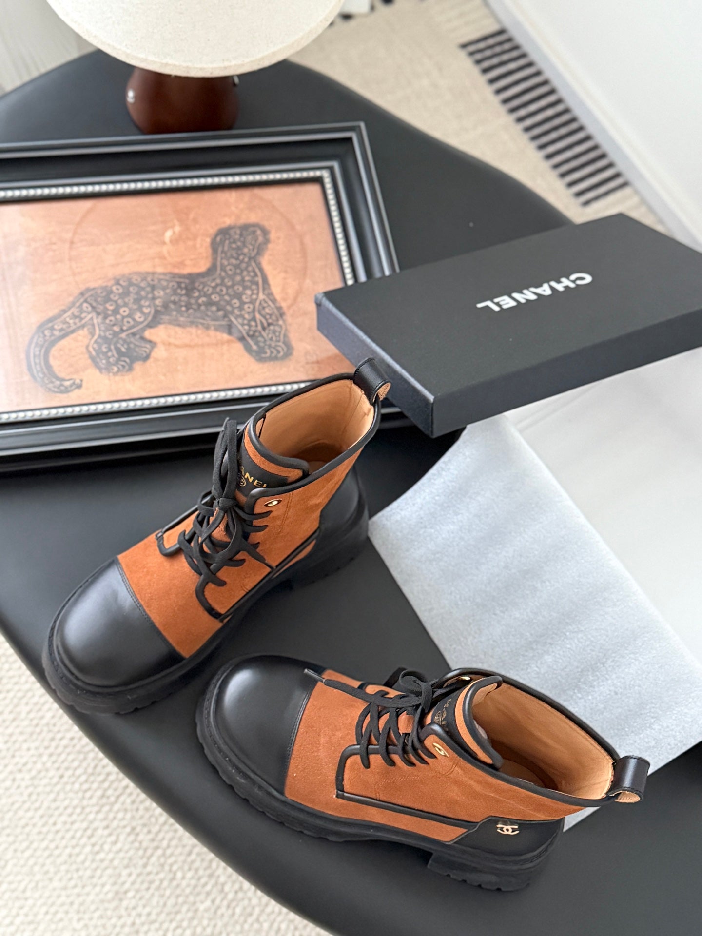 CC 25 ankle boots burnt orange black suede sheepskin 458766