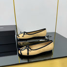 CC 25 Cambon Ballet Flat Beige Black Quilted Calfskin