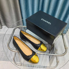 CC 25P Ballet Flat Black Calfskin Yellow Patent Calfskin
