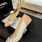 CC 25P Ballet Heel 50mm White Beige Raffia Large Logo