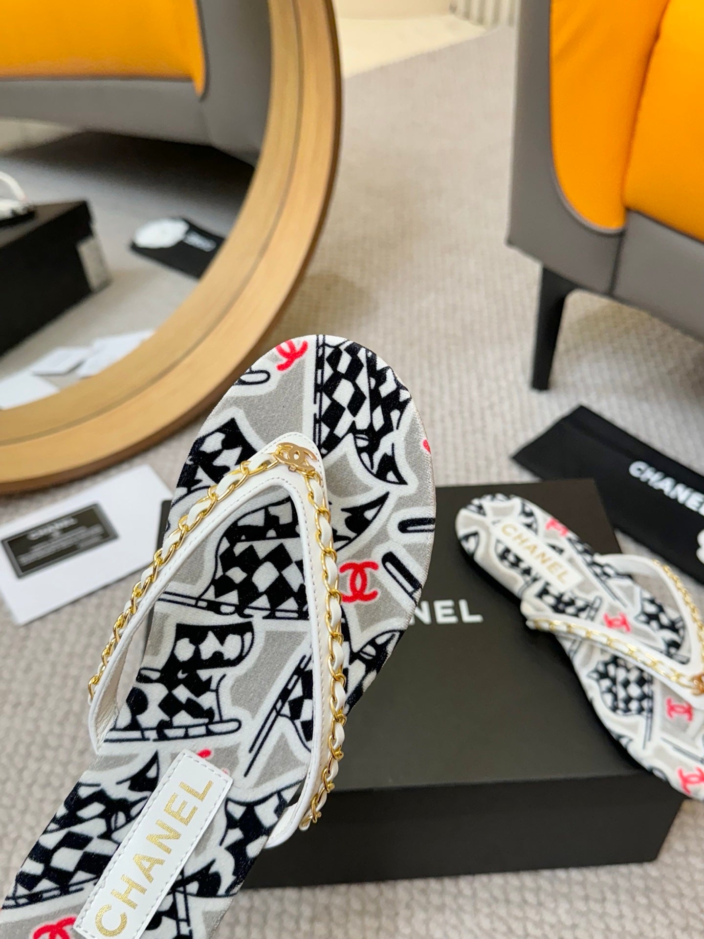 CC Chain Strap Thong Slippers Multicolor Cloth Sheepskin Velvet 305867